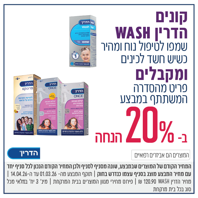 קונים הדרין WASH ומקבלים פריט המשתתף במבצע ב 20% הנחה